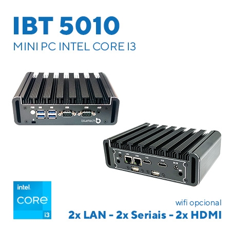 Mini PC Industrial IBT 5010, Intel Core i3, 2x HDMI, 2x LAN Gigabit, 2x Seriais RS 232, 4x USB 3.0, 2x USB 2.0