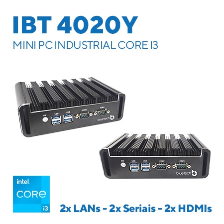 Mini PC Industrial IBT 4020y, Intel Core i3, 2x HDMI, 2x LAN Gigabit, 2x Seriais RS 232, 4x USB 3.0, 2x USB 2.0